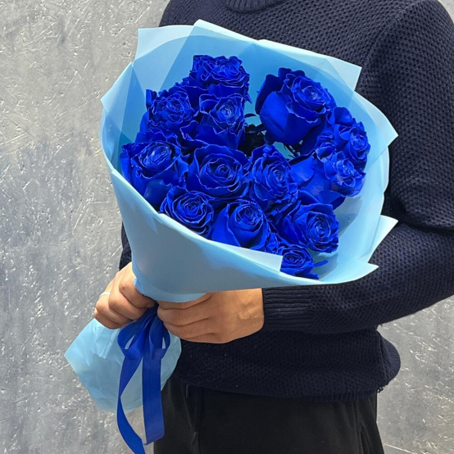 Глубокий синий оттенок «Индиго» подчёркивает элегантность классических роз и смотрится дорого в любом интерьере. Букет собран из 13 свежих роз, оформлен в аккуратную голубую плёнку и перевязан лентой в тон. Универсальный подарок для дня рождения, юбилея, корпоративного повода или как неожиданное «спасибо».