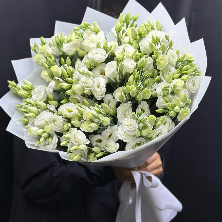 На фото букет 19 белых эустом. В составе: эустома (лизиантус) 19 шт, дизайнерская упаковка 3 шт, атласная лента 2 шт, . Все цветы свежие и ароматные, букет красиво оформлен и отлично подходит для подарка. Доступна доставка цветов или самовывоз.