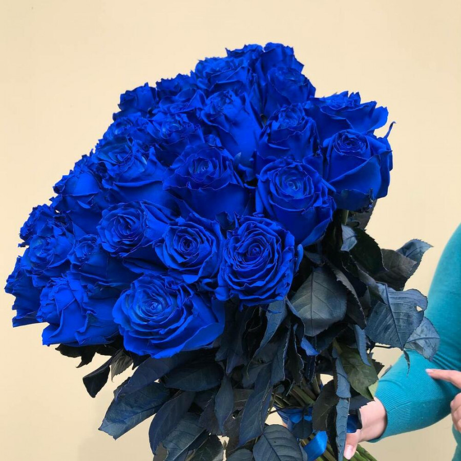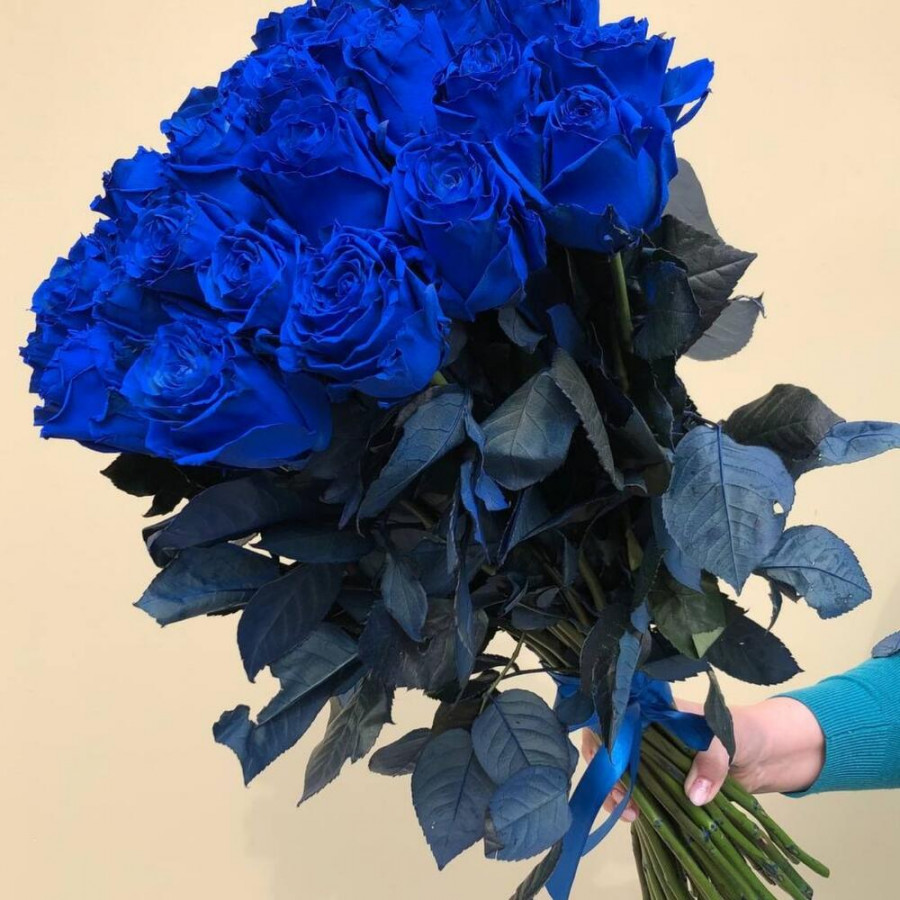 Монобукет из 31 синей розы «Ультрамарин»