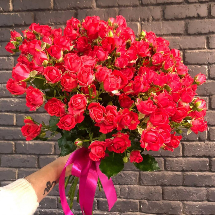 Букет из 11 красных кустовых роз - это прекрасный подарок для тех, кому вы хотите выразить свою любовь и уважение. Кустовые розы имеют более крупные и пышные бутоны, чем обычные розы, что делает их еще более привлекательными. Под лентой букет выглядит еще более изящно и элегантно. Этот букет подойдет для подарка любимой женщине, маме, бабушке, коллеге или подруге.