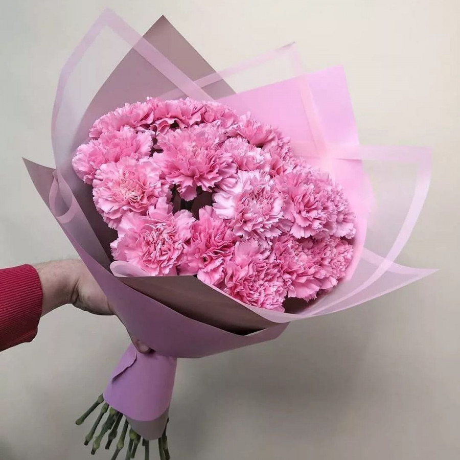 На фото букет из 29 розовых гвоздик. В составе: гвоздика 29 шт, крафт-бумага 1 шт, атласная лента 1 шт, . Все цветы свежие и ароматные, букет красиво оформлен и отлично подходит для подарка. Доступна доставка цветов или самовывоз.