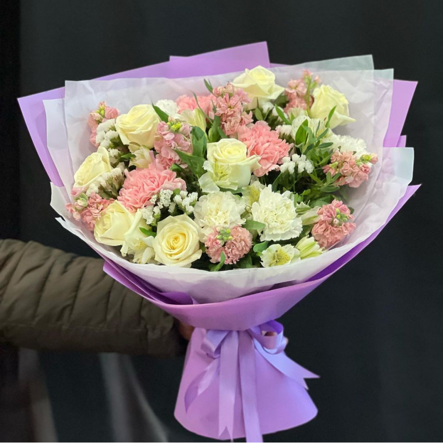 Перед выездом курьера пришлём фото свежесобранного букета, чтобы вы были спокойны