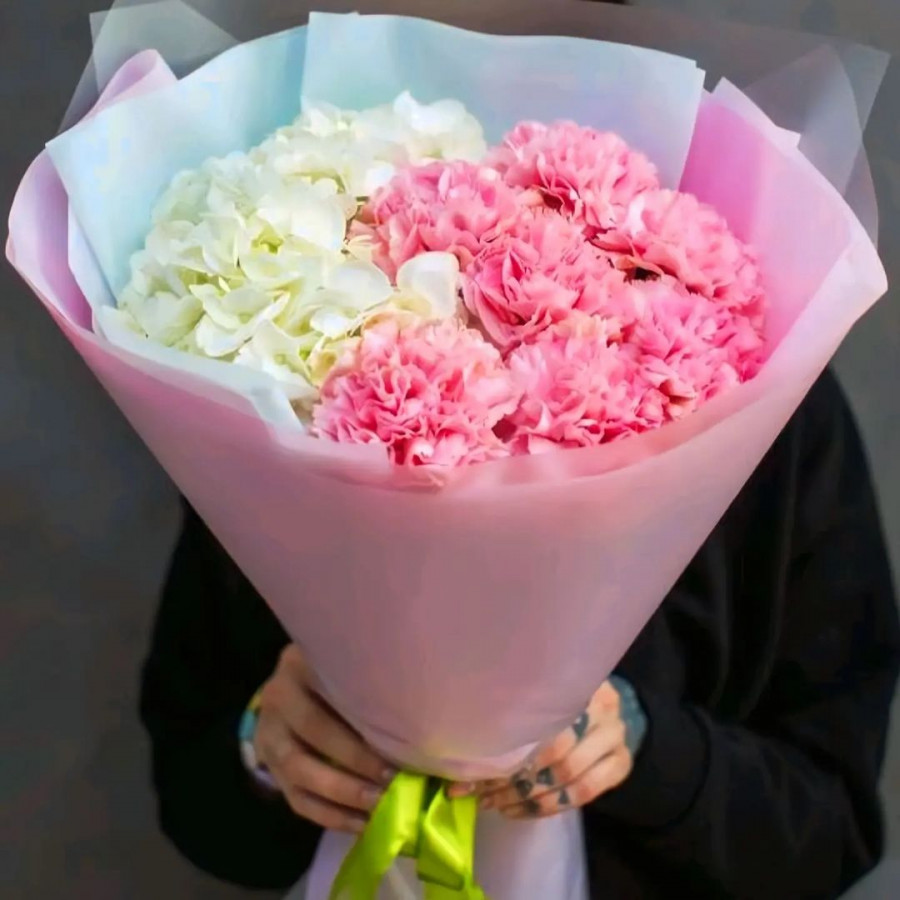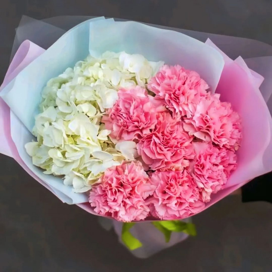 Букет из гортензии и гвоздик