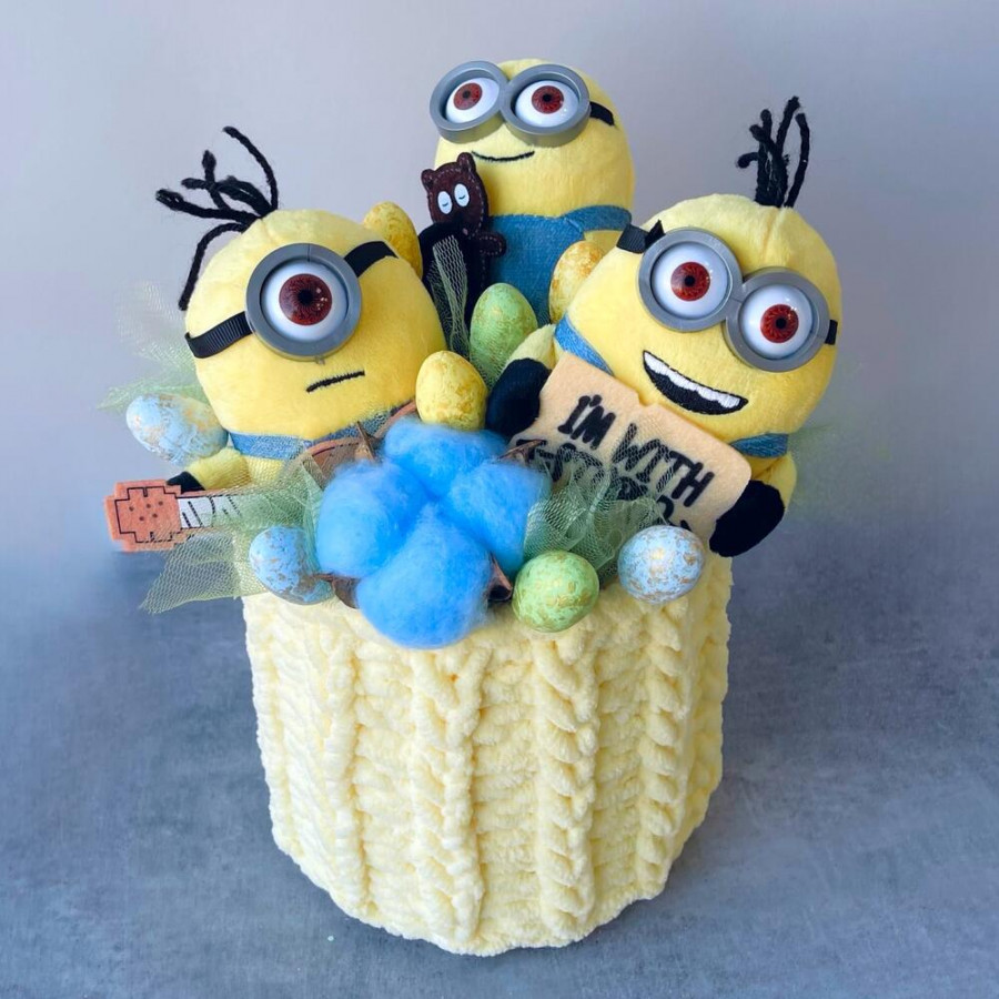 На фото букет из игрушек «миньоны». В составе: . Все цветы свежие и ароматные, букет красиво оформлен и отлично подходит для подарка. Доступна доставка цветов или самовывоз.