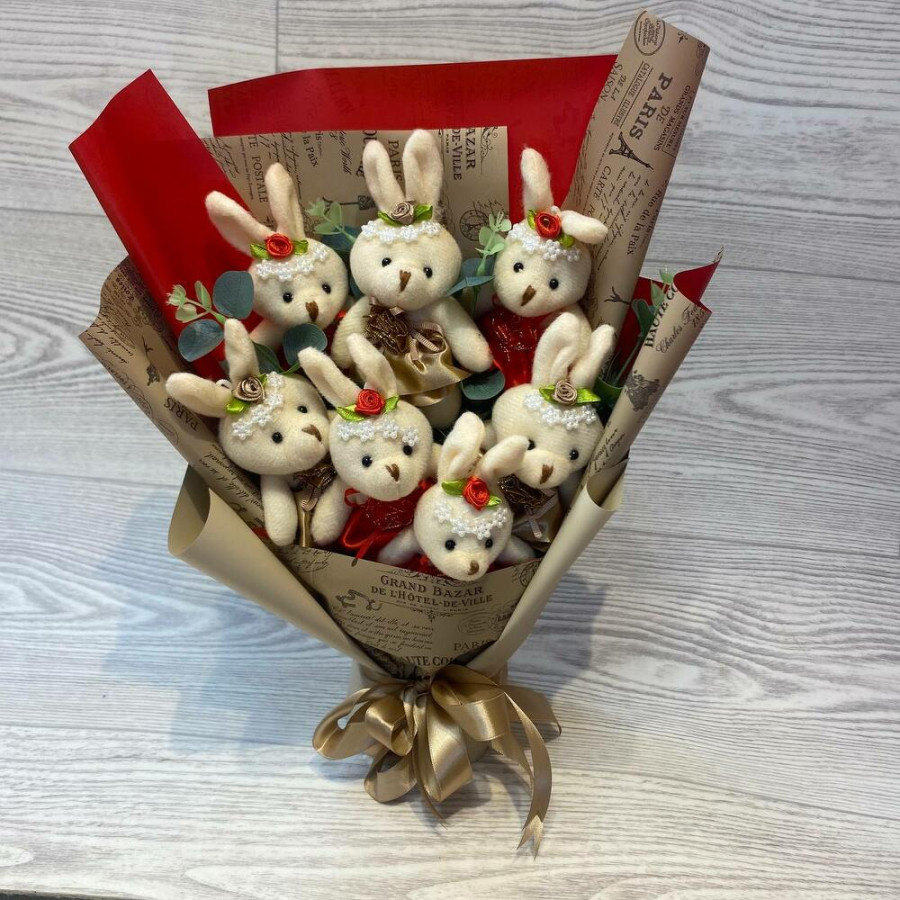 Букет из игрушек зайчат в платье