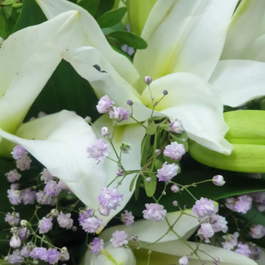 Букет из лилий и гипсофилы в коробке в Джанкое