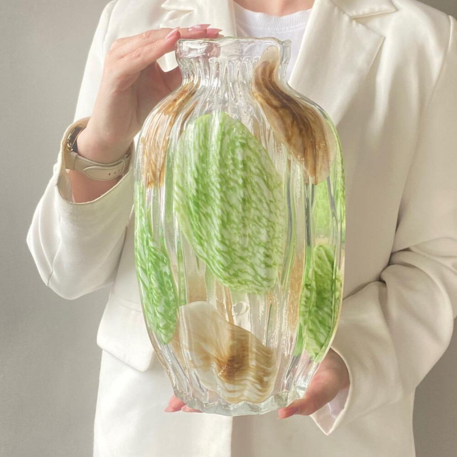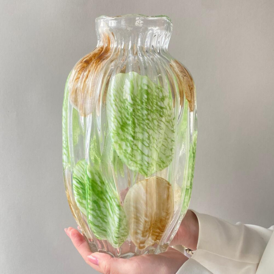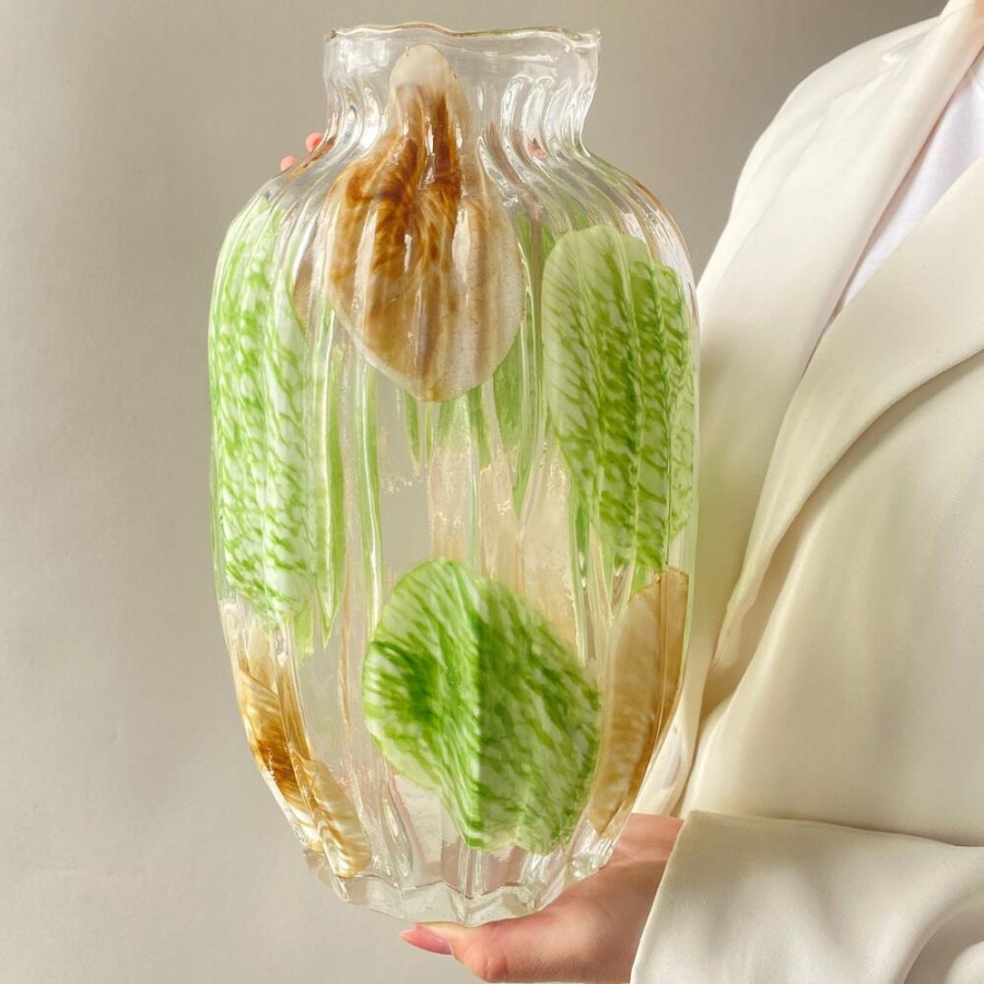 На фото ваза для цветов с листьями l. В составе: . Все цветы свежие и ароматные, букет красиво оформлен и отлично подходит для подарка. Доступна доставка цветов или самовывоз.